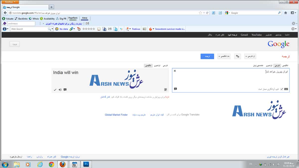 حال اگر جمله (ایران پیروز خواهد شد) را در این مترجم وارد نمائید.