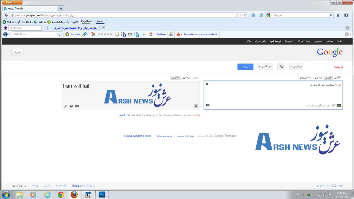 میبینید که سیستم مترجم گوگل ترجمه این مطلب را به صورت صحیح Iran will fail. نمایش می دهد