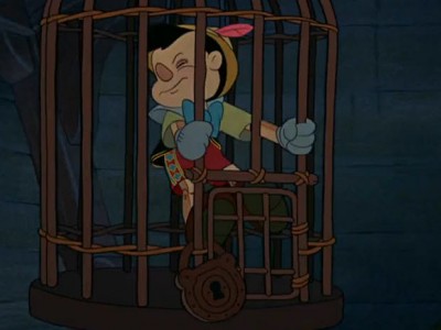 پس از آن پينوكيو دوباره به وجدان و ضمير آگاه خود بازمیگرددو تلاش ميكند تا از آنجا فرار كند. اما همه افراد با وجدان خوب در جهان هم نميتوانند او را نجات دهند و نميتواند اين قفل را باز كند. براي نجات او باز هم به دخالت نيروي الهي نياز است اما به شرط آنكه قبل از آن به پري (فرستاده الهي) و البته مهمتر از آن، به خودش حقيقت را بگويد.