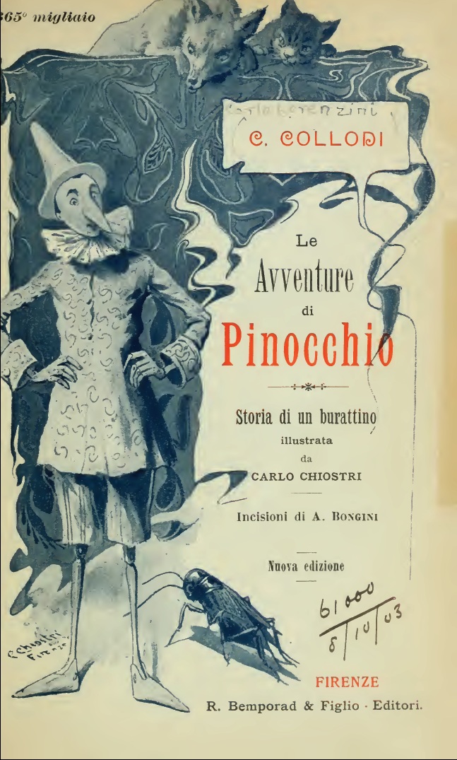 داستان پينوكيو اولين بار توسط فردي به نام “كارلو لورنزيني”(ملقب به كارلو كولودي) بين سالهاي ۱۸۸۱ و ۱۸۸۳ در ايتاليا به رشته تحرير در آمد. لورنزيني اين حرفه را از مقالهنويسي در روزنامهها آغاز كرد و در اغلب موارد براي بيان ديدگاههاي سياسي خود از روش طنزنويسي بهره ميجست. لورنزيني در سال ۱۸۷۵ وارد دنياي ادبيات كودكان شد و از اين طريق تلاش كرد تا عقايد سياسي خود را به مخاطب انتقال دهد. براي مثال؛ سري داستانهاي Giannettino كه عمدتاً به وحدت ايتاليا اشاره داشت.