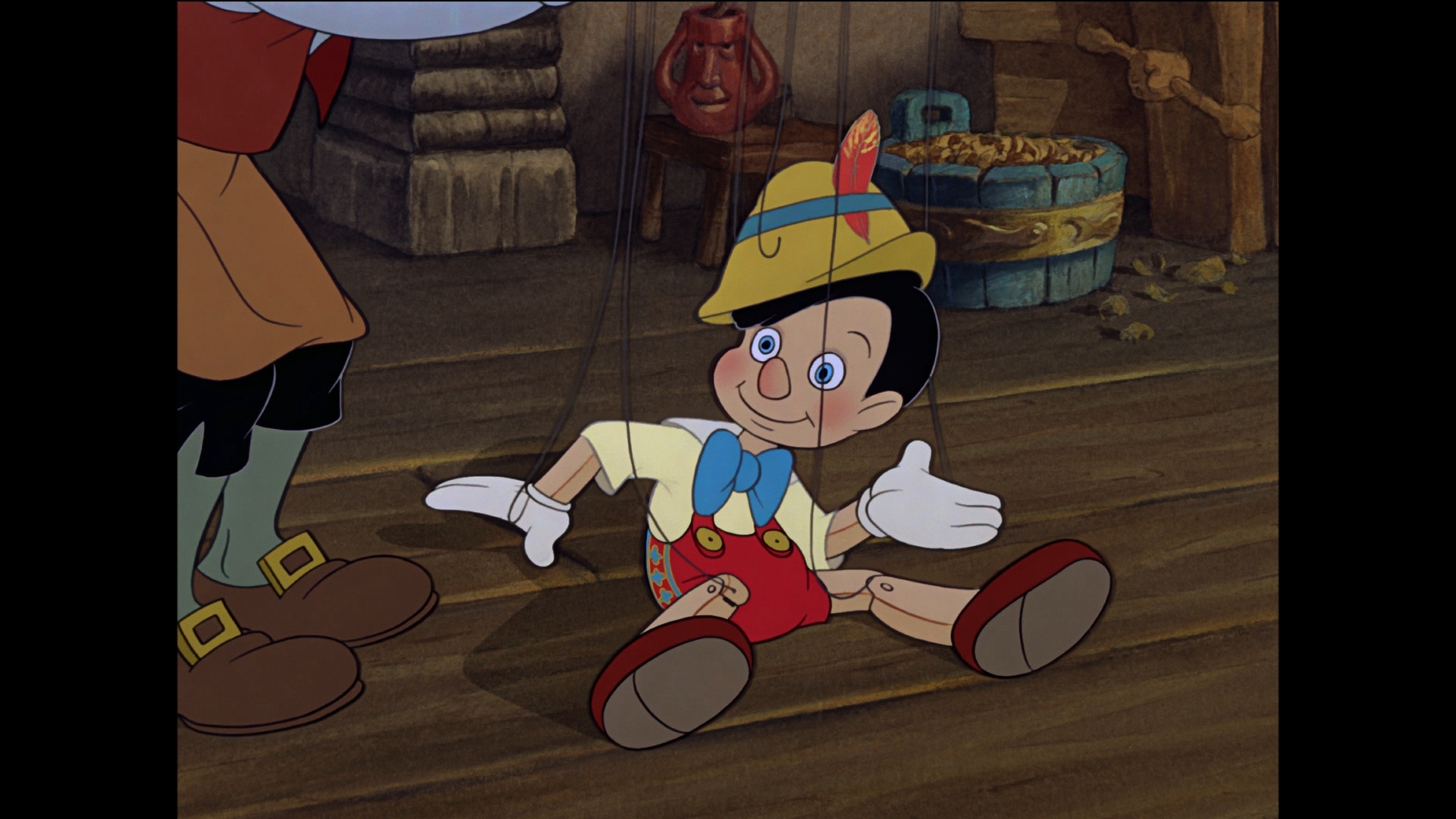 فيلم با پدر “ژپتو” (Geppetto)، يك چوب تراش ايتاليايي، آغاز ميشود كه در حال ساخت يك عروسك خيمه شببازي از يك تكه چوب است. او این عروسک را به شکل یک انسان میسازد اما عروسك موجودی بیجان است.