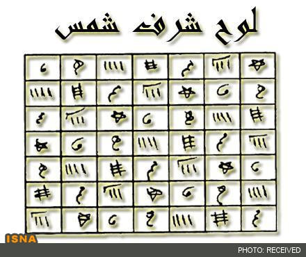 اما نقشهای رمز گونهای که شرف الشمس نامیده میشود در کتاب «جنةالوافیه» مشهور به «مصباح کفعمی» آمده است. کفعمی در حاشیه کتاب مینویسد: «در بعضی از کتابهای علمای شیعه دیدم که این شکل از امیرالمۆمنین (علیه السلام) نقل شده است. که وقتی عازم جهاد بود در بین راه که استراحت میکردند این شکلها را بر روی سنگی حک کرد و فرمود: این رمز پیروزی ماست. به نظر میرسد بیان چنین نقلی محکم نیست؛ چون سند این روایت تا امیرالمۆمنین (علیه السلام) ذکر نشده است.» مرحوم شیخ بهایی هم همین شکل را در کتاب «سرّ المستتر» با اندکی تغییر آورده است. البته در کتابهای یاد شده این شکل به «شرف الشمس» نامیده نشده است و احتمالاً تشخیص اساتید علم ختوم و اذکار این بوده که این شکل در شرف شمس – که نوزدهم فروردین ماه است – نوشته شود که ساعت خوبی است و باعث تأثیر بیشتر این شکل خواهدبود.