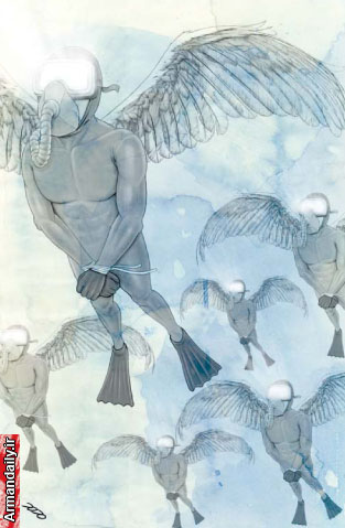 اما در این میان، روزنامه اصلاح طلب آرمان امروز(منتسب به هاشمی رفسنجانی )، طرحی را با عنوان غواصان قهرمان در صفحه آخر روز چهارشنبه به چاپ رساند که با نگاهی به آن می توان برداشت های دیگری نیز داشت. در نگاه اول به این اثر، غواصانی مشاهده می شوند که بال های برای آنها کشیده شده و در حال پرواز رو به بالا هستند. بدن های ورزیده و ماهیچه ای این ۶ غواصی که در طرح آمده اند، نگاه هر بیننده ای را به خود جلب می کند.