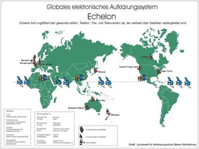 مبدا این سیستم شنود، مقر سازمان پیمان آتلانتیک شمالی (ناتو) در حومه بروکسل بود.» گفتنی است که در سال ۲۰۰۳ مقامات اتحادیه اروپا خبر کشف یک سیستم شنود تلفنی را در دفاتر چند کشور عضو این اتحادیه از جمله فرانسه و آلمان تایید کردند.