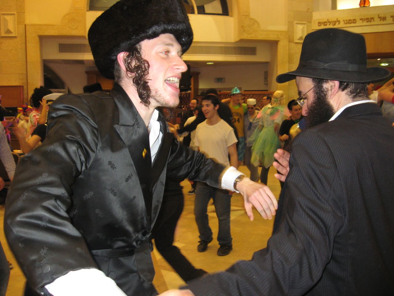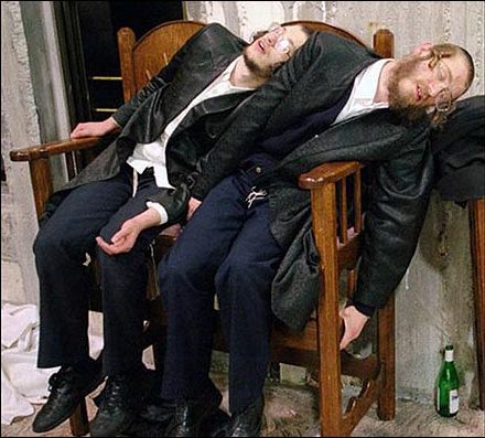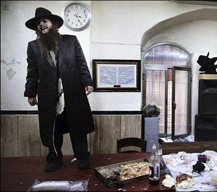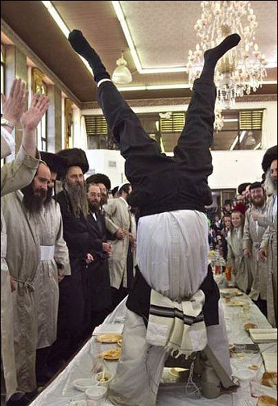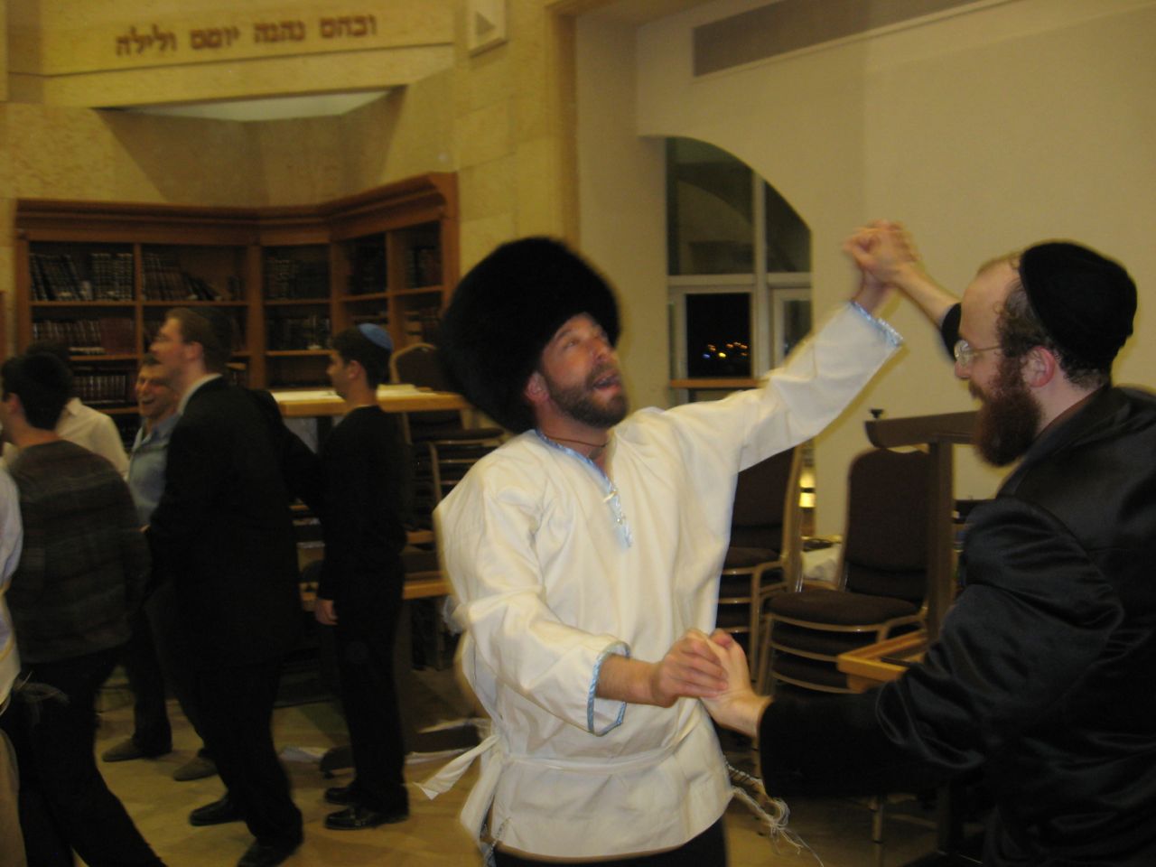 خاخام های یهودی نیز در این جشن ها مراسم ویژه ای برگزار می کنند. خاخام های صهیونیست با برگزاری جشنی، در نوشیدن شراب و رقص و پایکوبی با یکدیگر رقابت می کنند. معمولا افراط در نوشیدن شراب در این روز به حدی است که قادر به راه رفتن نبوده و در خیابان های تل آویو و دیگر اراضی اشغالی، بیهوش و بی رمق به زمین می خورند.