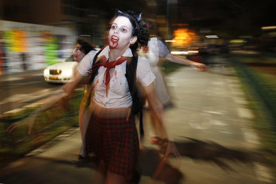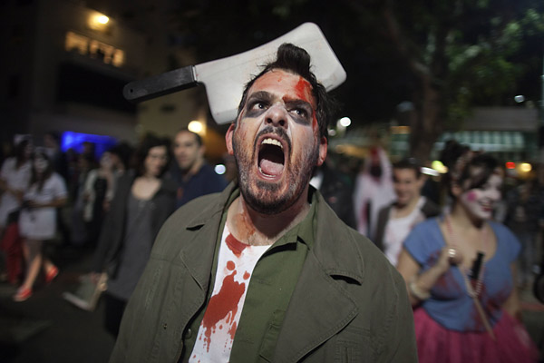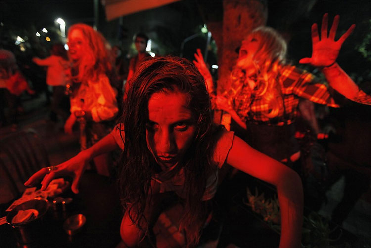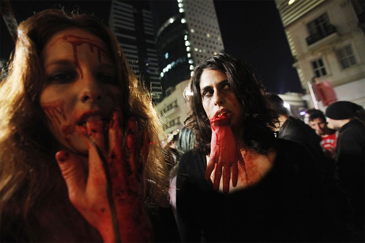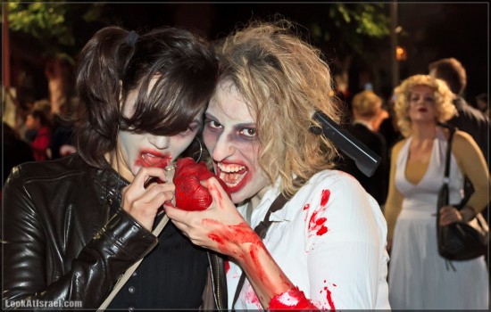 از دیگر مراسمی که در عید پوریم اجرا می شود، رژه زامبی ها در اسرائیل است. در این رژه صهیونیست ها با گریم خود به شکل زامبی ها – آدم خوارها – اعضای مصنوعی از بدن انسان را به نشان خونخواهی و کشتار ایرانیان بر دهان می گیرند.