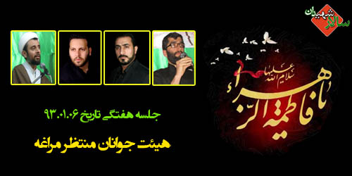 جلسه هفتگی ۶ فروردین ماه سال ۱۳۹۳ با سخنرانی حاج آقا رفیعی و مداحی کربلایی علی داداشی و کربلایی شهرام شهریان نسل و کربلایی حسین بخشی در هیئت جوانان منتظر مراغه به صورت صوتی از سایت سالار شهیدان در ادامه مطلب آماده دانلود میباشد.