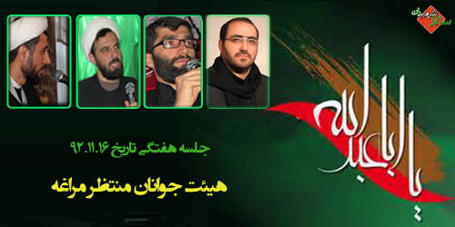 جلسه هفتگی ۱۶ بهمن سال ۱۳۹۲ با سخنرانی حاج آقا رفیعی و مداحی حاج آقا داوری و کربلایی محسن عاشقی و کربلایی حسین بخشی در هیئت جوانان منتظر مراغه به صورت صوتی از سایت سالار شهیدان در ادامه مطلب آماده دانلود میباشد.