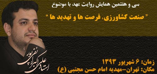 سخنرانی استاد رائفی پور از سلسله جلسات روایت عهد (جلسه ۳۷ ) با موضوع “صنعت کشاورزی ،فرصت ها و تهدید ها” آماده دانلود می باشد .
