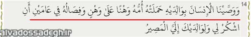 آیه ی ۱۴ سوره ی « لقمان » نیز چنین میفرماید: