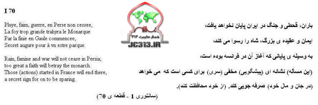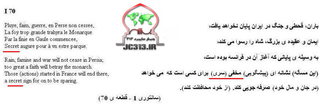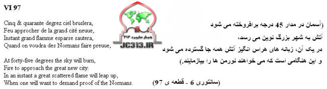 (E یکی دیگر از پیشگویی های جعلی منتسب به نوستراداموس را نیز در زیر می بینید:
