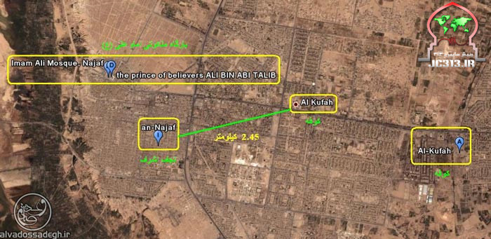 همانگونه که ملاحظه فرمودید، فاصله ی بین کوفه ی امروزی و نجف نیز بسیار کوتاه و در حد ۲٫۴۵ کیلومتر می باشد.