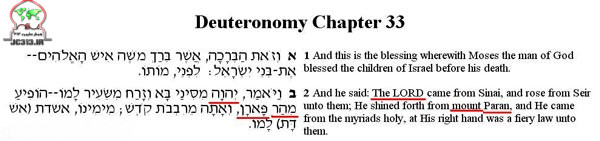 بدین ترتیب مشخص می گردد که منظور از کوه مقدس فاران در تورات، کوه مقدس حراء در سرزمین مکه (فاران یا پاران) می باشد.
