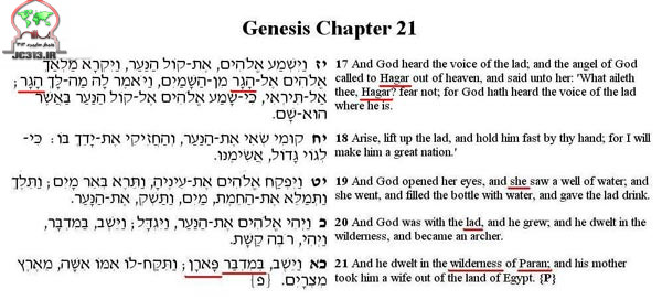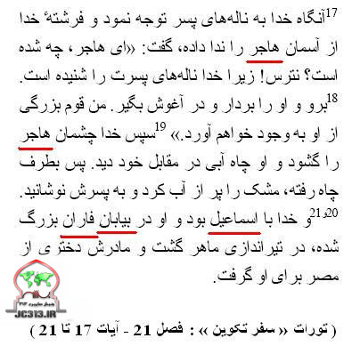 - A) اولین سند این است که در تورات به سرزمین مکه، سرزمین فاران یا پاران اطلاق شده است. برای مثال درباره ی حضور حضرت هاجر و حضرت اسماعیل (ع) در سرزمین مکه، در تورات آمده است: