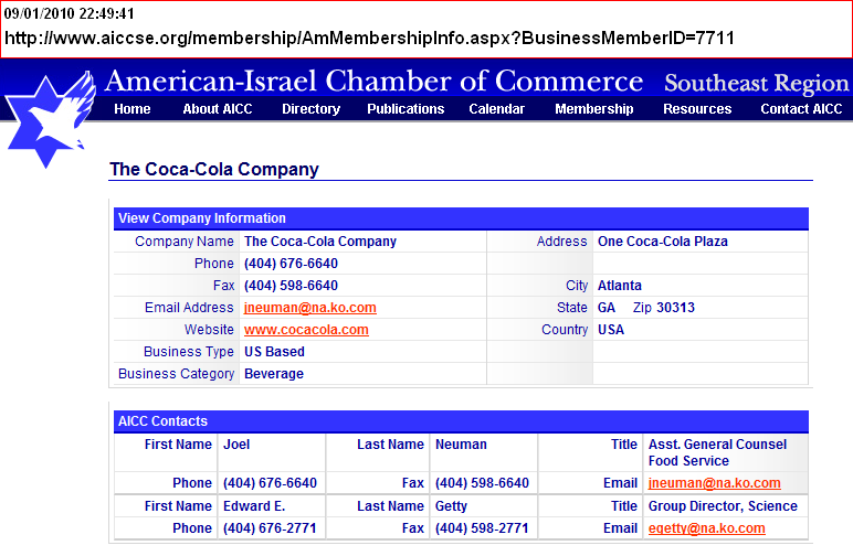 کوکاکولا یکی از اعضای فعال اتاق بازرگانی آمریکا اسرائیل است.
