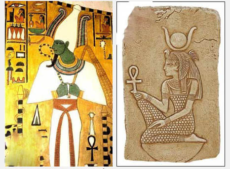 ۵. افسانه ی ایزس (Isis) یا زن بیوه، نیز از دوران مصر باستان اقتباس شده است. فراماسونها اعتقاد دارند که تمام ماسونها فرزندان زن بیوه می باشند. همان طور که ذکر خواهد شد در باور مصریان قدیم، Isis و Osiris الهه های مصر باستان بودند که در اثر ازدواج آنان تعادل طبیعت به وجود آمد. بعد از مدتی Osiris مرد و خدای شهر های مردگان گشت. بدین ترتیب Isis بیوه شد.