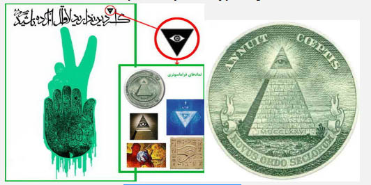 ۳.یکی از نمادهایی که در فراماسونری بسیار کاربرد دارد نماد چشم جهان بین است که به صورت یک هرم و چشم در انتهای آن می باشد این نماد مربوط به یکی از خدایان مصر باستان می باشد