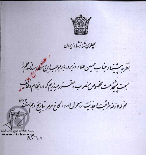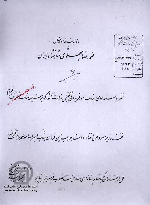 فرمان محمدرضاپهلوی: