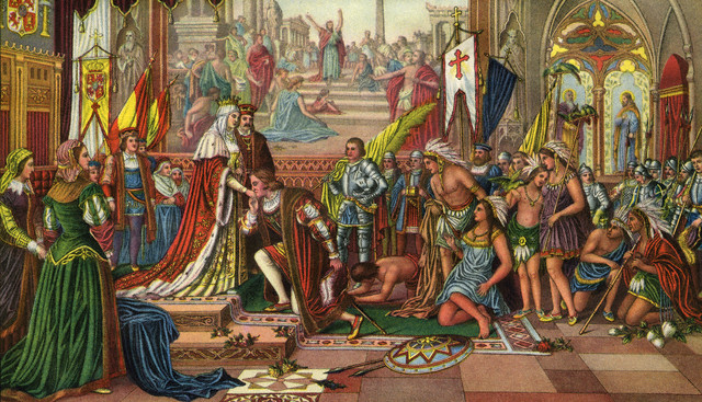 کریستف کلمب به همراه جواهراتی که از سرزمین های آمریکا بدست آورده بود راهی اسپانیا شد. جواهرات را نزد ملکه ایزابل تقدیم نمود.