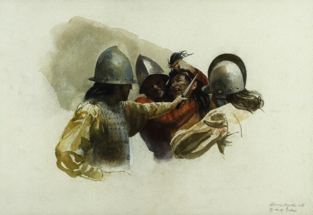مأموران کلمب با بی رحمی تمام در حال بریدم گوش های یک سرخپوست(بومی)