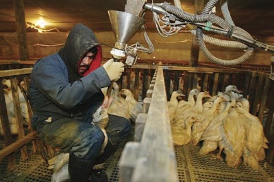 سپس پرنده در قفسی کوچک بدون حرکت قرار داده میشود تا چربی بیشتری در بدن او ایجاد شود. این شیوه رفتار با حیوانات که به شکل بیرحمانهای صورت میگیرد اعتراضات بسیاری را در پی داشته است.